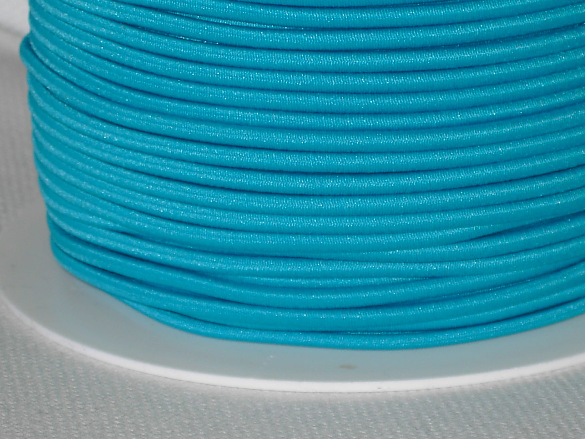 Guma ozdobna, okrągła o średnicy 2,5 mm. Doskonała jako troczki w bluzach lub służąca do zabawy dla dzieciaków do skakania.