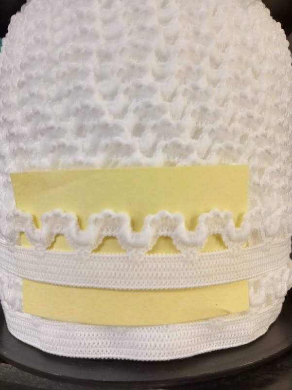 Ozdobna guma-koronka, o szerokości 16mm, w kolorze białym.