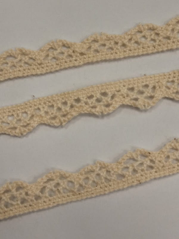 Koronka bawełniana polskiej produkcji, o szerokości 10 mm, w kolorze ecru.