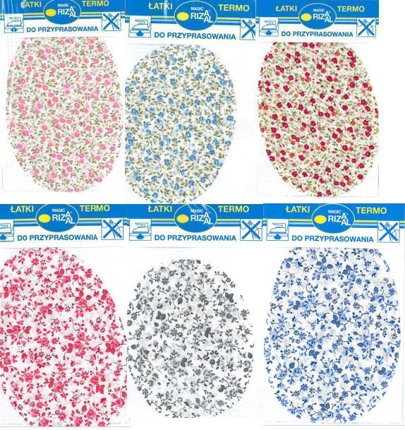 Łatki owalne, z materiału w kwiatki do przyprasowania. Zabezpieczają odzież przed uszkodzeniem, a także stosowane jako element dekoracyjny. W opakowaniu 2 sztuki o wymiarach 9,5cmx14cm. Idealne na łokcie i kolana. Wystarczy przyprasować żelazkiem bez pary i gotowe!