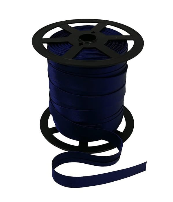 Lamówka satynowa, cięta ze skosu, zaprasowana na 25 mm, w kolorze granatowym.
