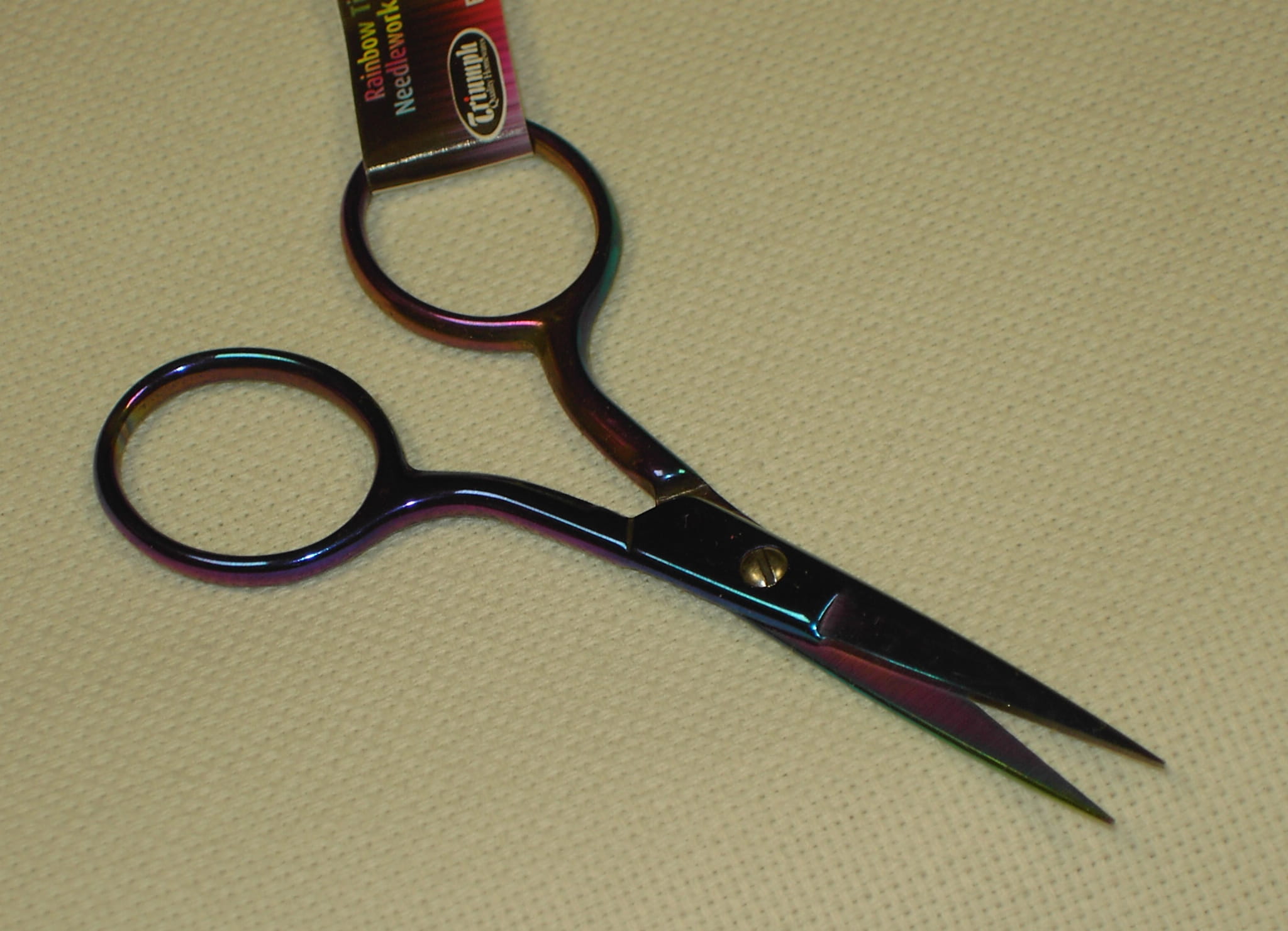 Metalowe nożyczki do precyzyjnego wycinania. Bardzo ostre, krótkie, wzór tęcza.