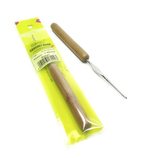 Szydełko stalowe, z bambusową rączką. Rozmiar wybity na metalowej części.