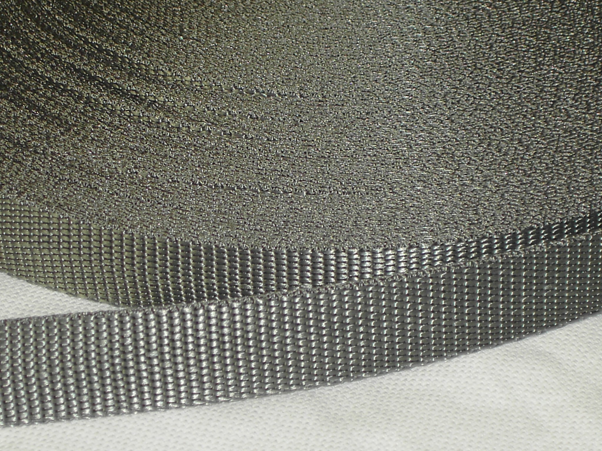 Taśma nośna o szerokości 25mm, w kolorze szarym. Używana przy plecakach, torbach, nosidłach itp