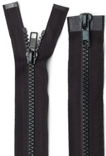 Zamek błyskawiczny, rozdzielczy, dwusuwakowy, kostkowy, o długości 75 cm. Kolor: czarny.