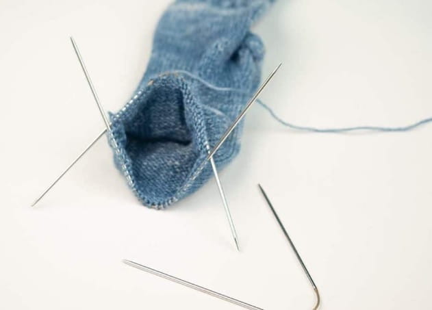 Sztuka: dwa druty w tym samym rozmiarze połączone żyłką