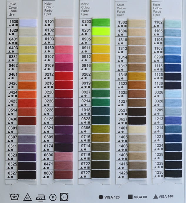 VIGA 120 to specjalistyczne nici szwalnicze wykonane ze 100% włókna poliestrowego ciętego. Technologia tych nici została opracowana tak, aby spełnić wszelkie oczekiwania jakościowe użytkownika. Optymalny dobór parametrów fizyko – mechanicznych zapewnia niciom VIGA bardzo dobrą szwalność i trwałość użytkowanego wyrobu. Wybarwienia są odporne na światło, pranie oraz czynniki chemiczne.