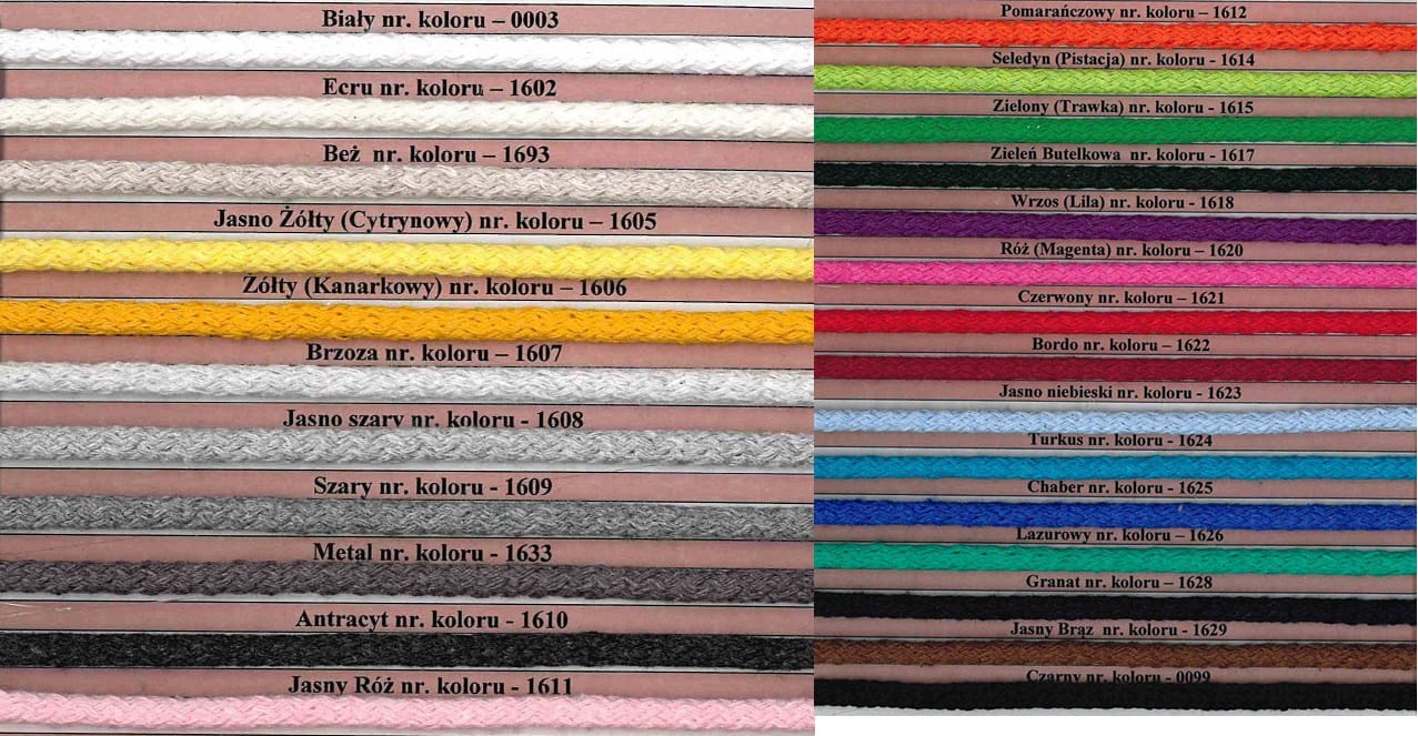 Sznurek bawełniany, pleciony o średnicy 5mm.