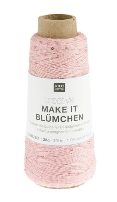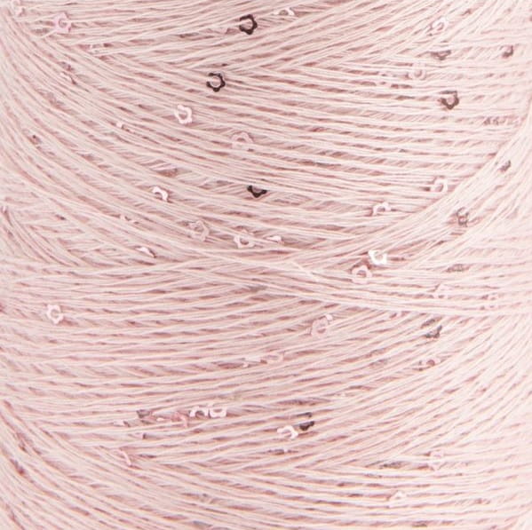 Błyszcząca włóczka ozdobiona drobniutkimi cekinami, w kształcie kwiatka.