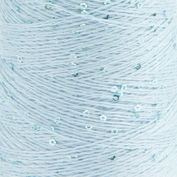 Błyszcząca włóczka ozdobiona drobniutkimi cekinami, w kształcie kwiatka.